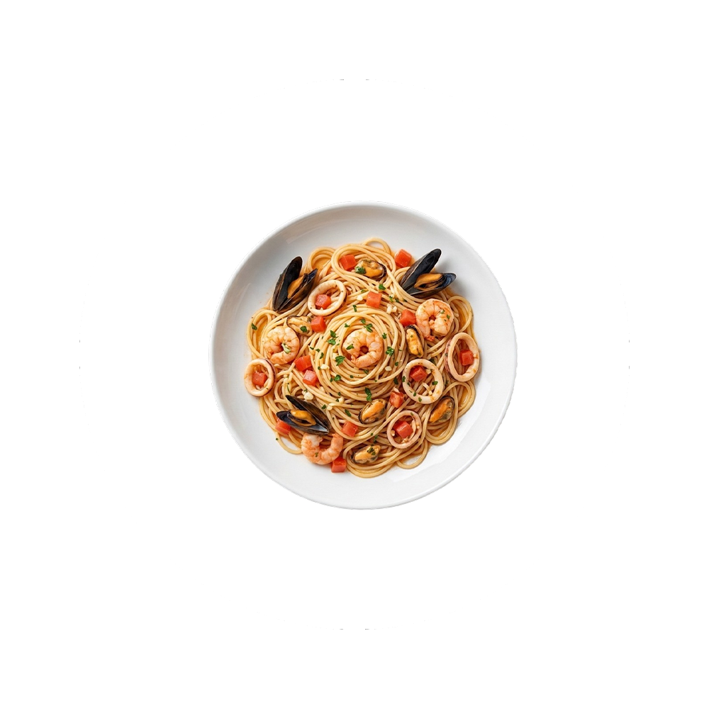 Zubereitet mit Meeresfrüchten, Tomatenwürfeln und Knoblauch