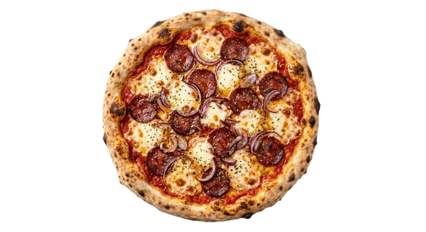 Tomaten, Mozzarella, scharfe Salami, Zwiebeln, Oregano
