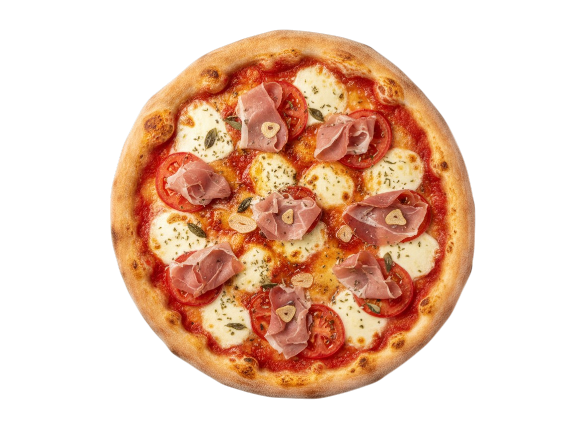 Tomaten, Mozzarella, Rohschinken, Knoblauch, Oregano