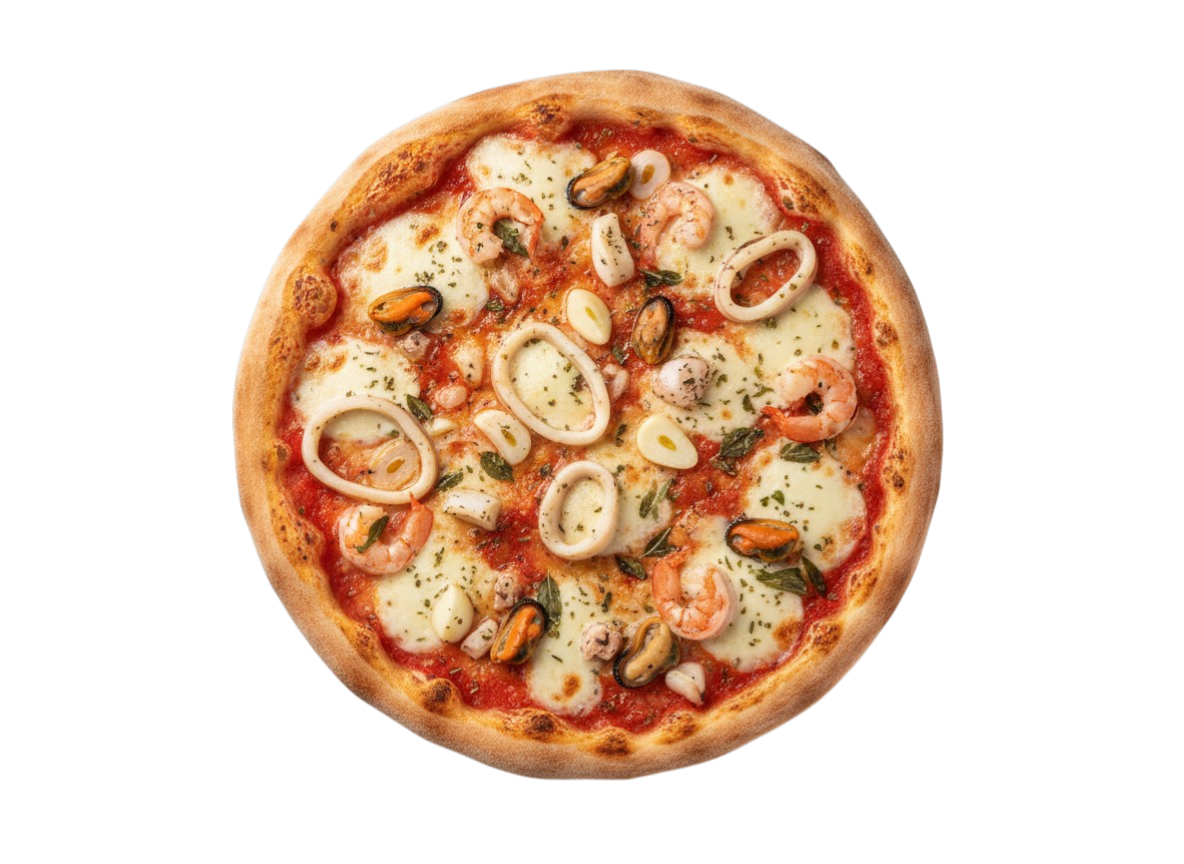 Tomaten, Mozzarella, Meeresfrüchte, Knoblauch, Oregano