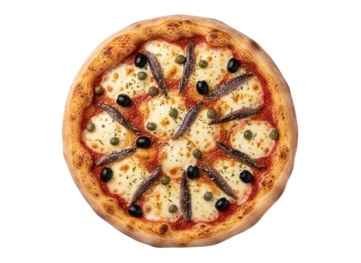 Tomaten, Mozzarella, Sardellen, Kapern, Oliven, Oregano