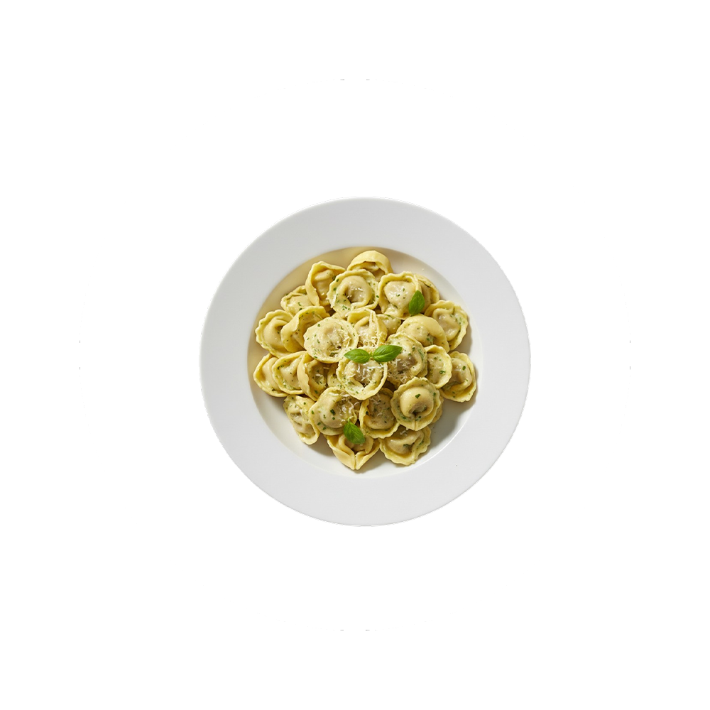Serviert mit Rindfleischfüllung an einer Basilikum und Rahmsauce